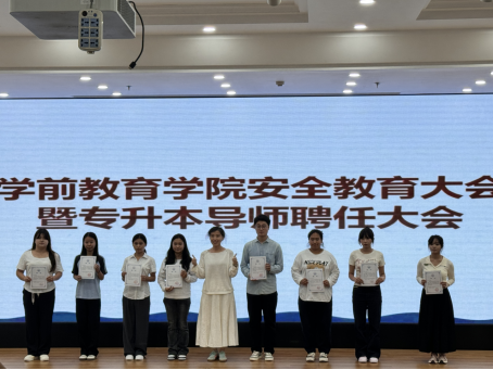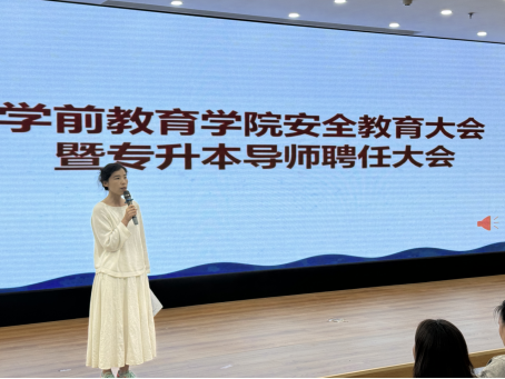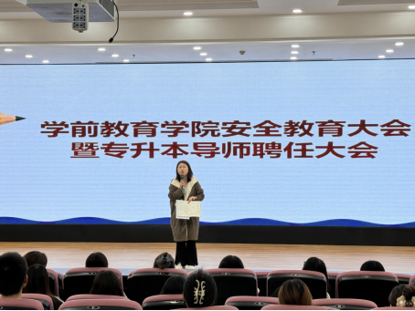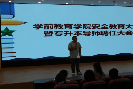 国庆假期来临之际,为切实筑牢学生安全防线,同时为专升本学子搭建优质成长平台,助力2026届毕业生积极规划就业方向,学前教育学院于9月29日晚在大学生报告厅集中召开安全教育大会暨专升本导师聘任大会。