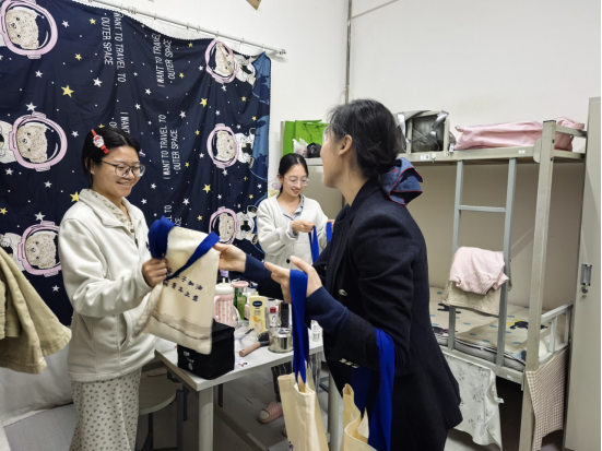 为全力助力专升本学子冲刺备考,给予学子们坚实的学业支持与暖心关怀,4月10日晚,学前教育学院党总支副书记康鑫鑫带队,全体辅导员深入专升本学生宿舍,为奋战在备考一线的同学们送上精心筹备的“升本加油包”,将学院的殷切关怀与美好祝福送到学子身边。